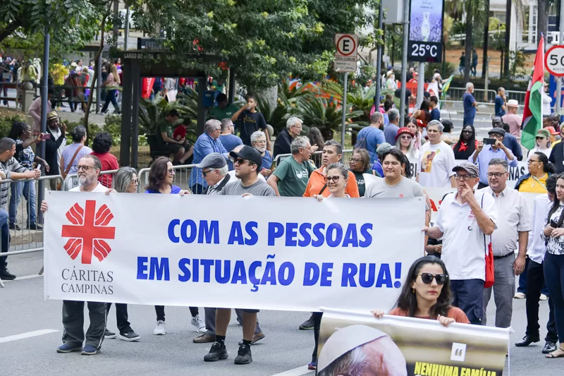 A Cáritas Arquidiocesana de Campinas participou do Grito dos Excluídos e Excluídas no dia 7 de setembro, que em 2025 convidou à reflexão sobre a vida em primeiro lugar, e em todos os sentidos: “Cuidar da casa comum e da democracia é luta todo dia”.