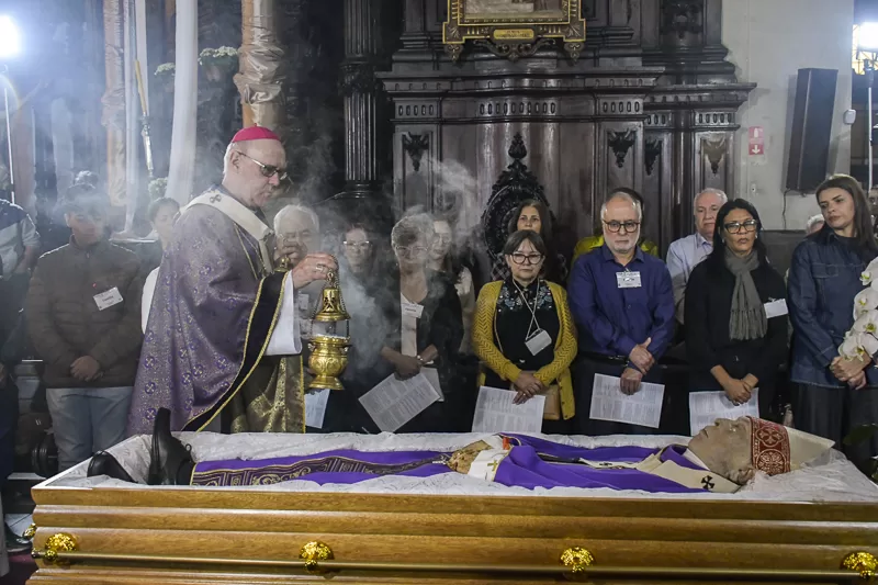 Acompanhe ainda um trecho da homilia do padre Nadai durante a Missa Exequial, realizada no dia 25 de Setembro, presidida por Dom João Inácio Müller e concelebrada por diversos bispos, padres e diáconos — entre eles o Cardeal Dom Odilo Pedro Scherer, Arcebispo Metropolitano de São Paulo, e o Bispo de Ipameri (GO), onde Dom Gilberto iniciou seu episcopado.