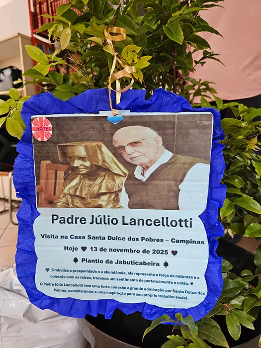 O Padre Julio Lancellotti visitou a Casa santa Dulce dos pobre, entidade parceira da Cáritas Campinas, no dia 13 de novembro. Na ocasião o padre conversou com os moradores, recebeu homenagens e plantou uma árvore, uma jabuticabeira.